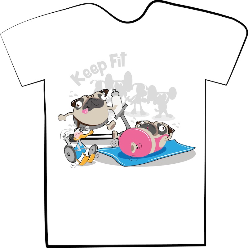 Pug and Duck cartoon t shirt designed by Mick Wright Caricatures. Impress family, friends and fellow gym members with this unique design from the Pug and Duck range. It clearly signifies your intentions whether you carry them out or not. Production being vegan friendly, using inks that contain no animal by products. Printing will last the lifetime of the garment….promise!